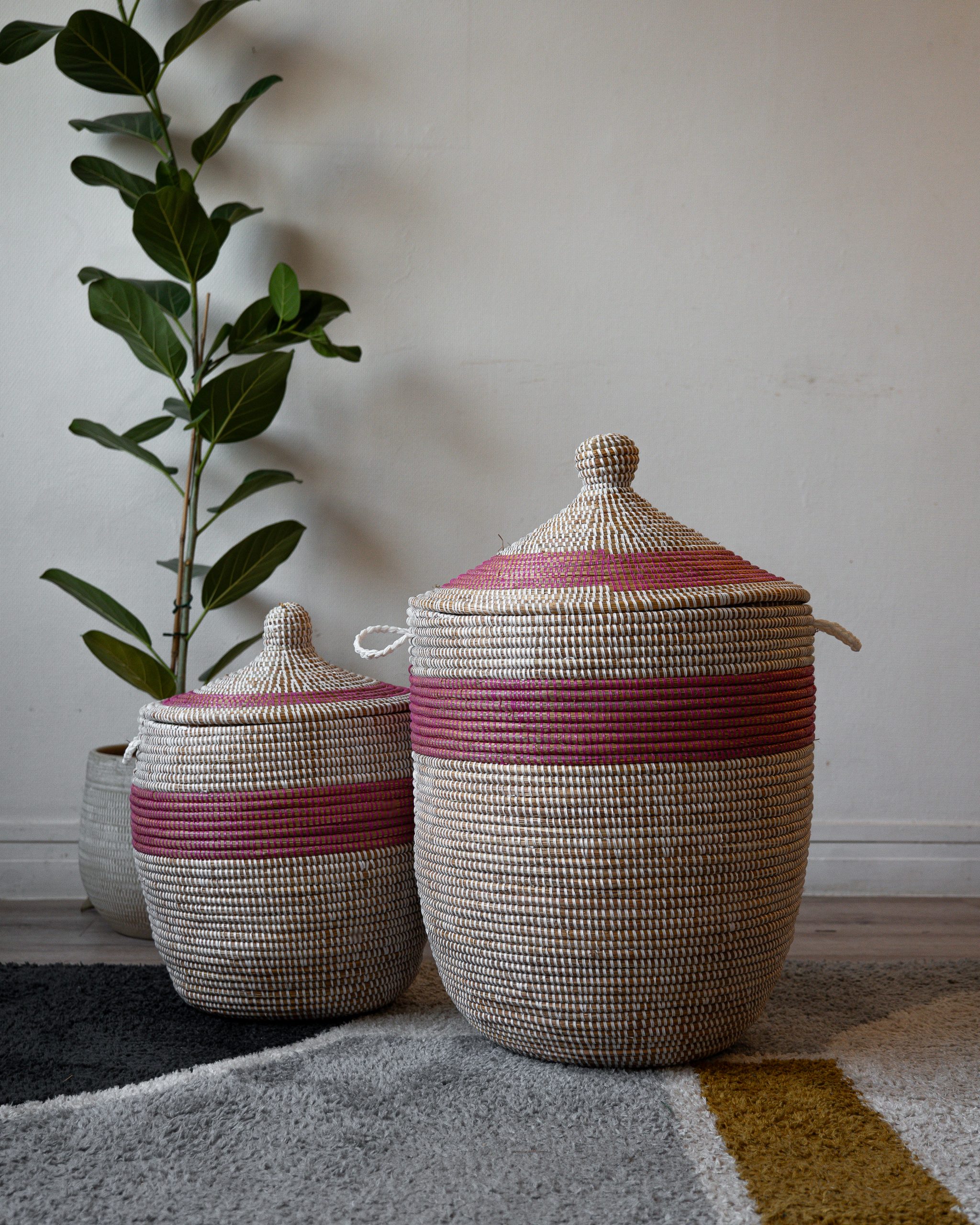 Apportez une touche d’élégance et de fonctionnalité à votre quotidien avec ce panier à linge artisanal, fabriqué à la main par des artisans sénégalais. Conçu à partir de matériaux naturels comme la paille tressée associé à des fils de plastique recyclé pour ajouter des touches de couleur et garantir une durabilité exceptionnelle, ce panier combine durabilité, respect de l’environnement et esthétique vibrante. Chaque pièce est unique et reflète l’excellence du savoir-faire traditionnel, avec des motifs géométriques et des couleurs audacieuses caractéristiques de l’artisanat sénégalais.